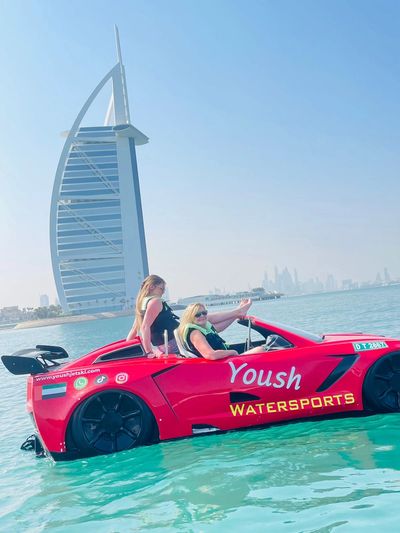 Apart from the thrilling ride on “car jetski” itself, the beautiful views will be an added bonus. You will get to see Dubai’s most famous landmarks such as the Burj al Arab hotel, the world’s tallest building Burj Khalifa, and the man-made islands of Palm Jumeirah. The best way to appreciate Dubai’s unique coastline is from the sea on a water car.